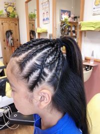 ダンスのイベント用に・・・9本のコーンロウでコーンロウをしてポニーテールにまとめています。とてもきれいなコーンロウが出来ました |